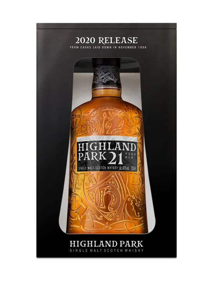 Three is definitely not a crowd in this brilliant marriage of three distinctive cask types, bottled at 46% marrying strength to ensure a rich and full-bodied finish. Tangy fresh ginger and sun-ripened oranges come to fore, driven by the sherry seasoned first-fill European oak hogsheads, while the ex-bourbon casks bring soft ribbons of vanilla cream with a drizzle of honey. Refill casks, balancing the influence of oak from the first-fill casks, leave just a hint of lightly toasted oak and soften the whisky’s smoky, spicy complexity. Created from just 55 hand-selected casks laid down in November 1998, our 2020 Release of Highland Park 21 Year Old is a fine example of a single malt whisky that has truly come of age.